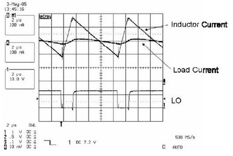 下圖, 說明了電感減小時(shí),在輸出電壓的變化范圍內(nèi),負(fù)載電流的波動(dòng)明顯增大。