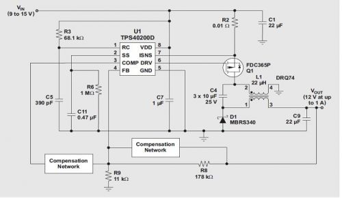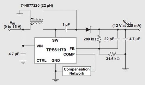 盡管DC/DC單端初級(jí)電感轉(zhuǎn)換器 (SEPIC) 拓?fù)洳皇鞘裁葱聳|西,但的確直到最近它才開(kāi)始流行起來(lái),然而,對(duì)于能夠?qū)Ω叩洼斎腚妷褐g的輸出電壓(例如:12V未校準(zhǔn)插墻式電源)進(jìn)行調(diào)節(jié)的轉(zhuǎn)換器需求一直都存在。雖然我們可以將任何升壓轉(zhuǎn)換器/控制器配置為一個(gè) SEPIC,但其在最近才得到普遍的使用。兩個(gè)因素促進(jìn)了 SEPIC 的人氣大增:(1) IC 制造廠商已經(jīng)開(kāi)始制造更多具有電流模式控制功能的升壓控制器,旨在簡(jiǎn)化補(bǔ)償;(2) 電感制造廠商已經(jīng)開(kāi)始制造許多可以最小化轉(zhuǎn)換器總 PCB 體積的單封裝耦合電感。改用耦合電感以后,許多具有兩個(gè)單獨(dú)電感應(yīng)用的電源體積可以縮減三分之一。圖 1 顯示了使用TITPS61170 和Wuerth 744877220 的一個(gè)SEPIC。
