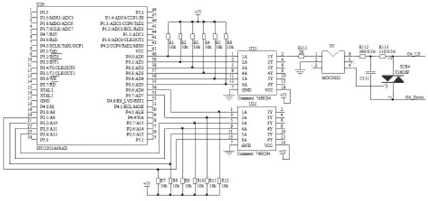 可控硅相控調(diào)光電路如圖3 所示。單片機的控制信號經(jīng)74HC04反相后送到光耦MOC3023,光電隔離后輸入到可控硅T16C6F 的控制極,控制可控硅的導通角,實現(xiàn)調(diào)光。