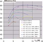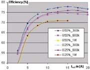 圖6所示效率是指不同頻率下負(fù)載電流和漏極電感的函數(shù)。此外,可觀察到如下結(jié)果:
