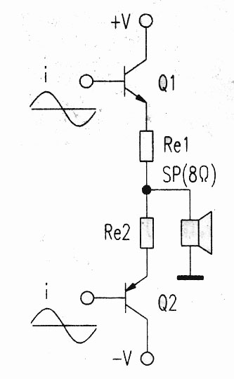 圖1 甲類推挽式功放輸出電路 圖2 輸出電路分解圖