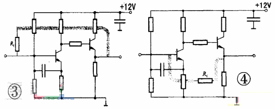 如圖3所示放大電路,由于反饋導線越過放大器基極電阻??赡墚a生寄生耦合,影響電路工作。圖4所示電路的布設將反饋元件置于中間,輸出導線遠離前級元件,避免干擾。