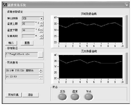 采用CC2531作為溫度數(shù)據(jù)的匯聚節(jié)點(diǎn),采用IEEE 802.15.4協(xié)議組成一個(gè)由10個(gè)采集終端組成的星狀網(wǎng)絡(luò),對(duì)終端節(jié)點(diǎn)的溫度進(jìn)行采集。終端節(jié)點(diǎn)硬件由CC2530實(shí)現(xiàn),溫度傳感器采用DS18B20.上位機(jī)由Visual C++編寫,實(shí)現(xiàn)數(shù)據(jù)的實(shí)時(shí)顯示,并實(shí)現(xiàn)數(shù)據(jù)的存儲(chǔ)和歷史溫度查詢。CC2531的USB設(shè)備描述符里聲明PID=0x1000,VID=0x0451,UBS驅(qū)動(dòng)采用Windows XP系統(tǒng)提供的usbser.sys.溫度采集結(jié)果如圖5所示。