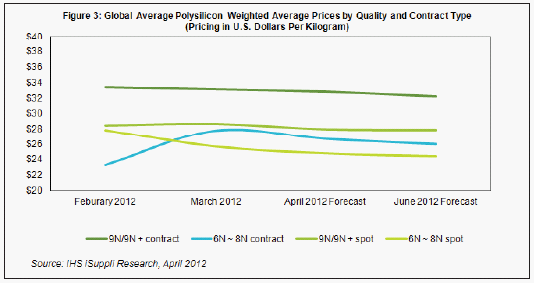 據(jù)IHS iSuppli公司的光伏(PV)展望報(bào)告,光伏產(chǎn)業(yè)關(guān)鍵原材料多晶硅生產(chǎn)技術(shù)過剩,將導(dǎo)致供過于求,造成其價(jià)格進(jìn)一步下滑。