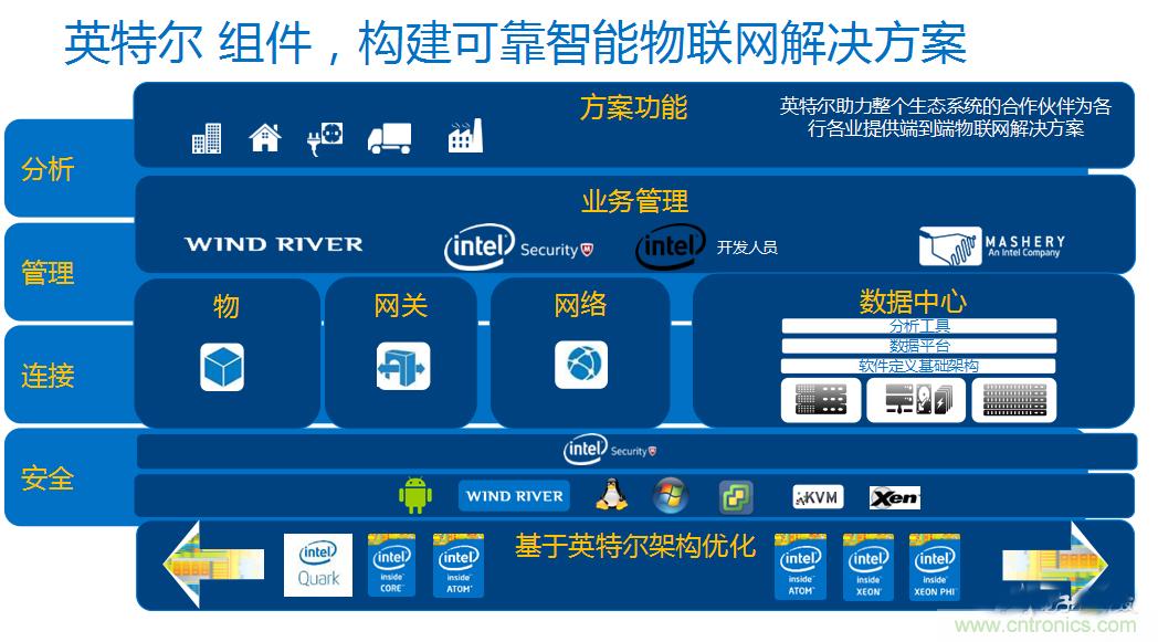 有鑒于此,英特爾將基于分析、管理、連接、安全四大關(guān)鍵點(diǎn),提供端到端可靠、智能物聯(lián)網(wǎng)解決方案,加速物聯(lián)網(wǎng)解決方案發(fā)展。