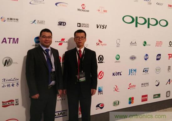廣東歐珀資源開發(fā)部部長劉波先生 (左) 與 Fairchild 大中華地區(qū)副總裁賴長青先生 (右) 在頒獎禮上合照