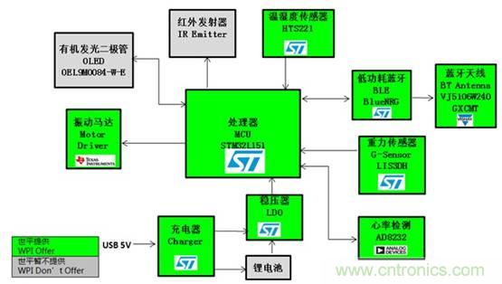 圖示6-大聯(lián)大世平基于ST STM32L151 單導(dǎo)聯(lián)心率監(jiān)護(hù)手表功能框圖