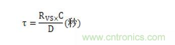 如上圖所示,在自舉驅(qū)動芯片VS端與Q1的源極之間增加一個電阻Rvs,該電阻不僅是自舉限流電阻,同時還是導(dǎo)通電阻和關(guān)斷電阻。由于占空比受自舉電容影響,該電阻值一般不能取得較大,推薦值為3~10Ω較為適宜。電阻和自舉電容的容值與其充電時間可以由以下公式得出: