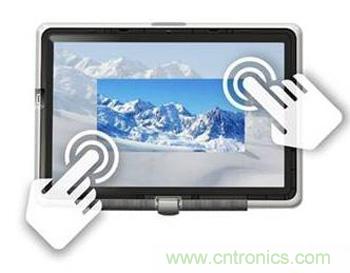 觸摸屏的功能發(fā)展由簡及繁,最初的產(chǎn)品只支持最簡單的操[LU4]控,就是一個手指觸摸屏幕上的一點來實現(xiàn)操控。比如我們每天在附件超市的POS終端機,或者在機場的check-in終端上進(jìn)行的操作。以前,我們只能通過屏幕周邊的機械按鈕進(jìn)行操控,單點觸摸屏在此基礎(chǔ)上實現(xiàn)了用戶界面方面的一大進(jìn)步。當(dāng)然,機械和新型電容式觸摸感應(yīng)按鈕在我們的家庭、辦公室及其他地方無所不在:手機、固定電話、遙控器、電視、電腦及其各種外設(shè)、游戲機、電冰箱、微波爐、烤箱,以及無線電和空調(diào)等車內(nèi)電子控制設(shè)備等等?,F(xiàn)在,如下列圖1所示的單點觸摸屏在顯示屏上直接集成了用戶控制界面,因此再也不需要傳統(tǒng)的機械按鈕了。