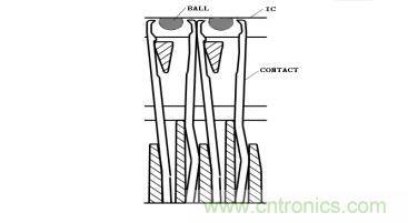 頂針式的適配座如圖5所示,黃色部分是頂針,黑色部分分別是焊球管腳IC和焊盤式管腳IC,不管是焊球還是焊盤式IC,其帶有彈簧能上下活動的頂針都能良好接觸。