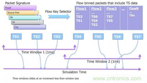 硬件仿真的標(biāo)志之一是,它能對大型復(fù)雜系統(tǒng)進(jìn)行復(fù)雜性能分析。某些情況下,可能需要數(shù)百萬個數(shù)據(jù)包才能切中當(dāng)前設(shè)計中穩(wěn)態(tài)分析的要點。以測量百萬兆以太網(wǎng)交換機(jī)的流量比特率為例。可以采用虛擬以太網(wǎng)簽名生成和數(shù)據(jù)包時間戳 (TS) 來計算這些測量。