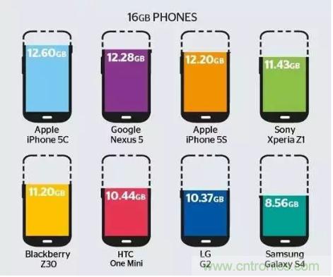 以下是一些旗艦級(jí)的手機(jī)16G空間實(shí)際可用的空間的對(duì)比圖。