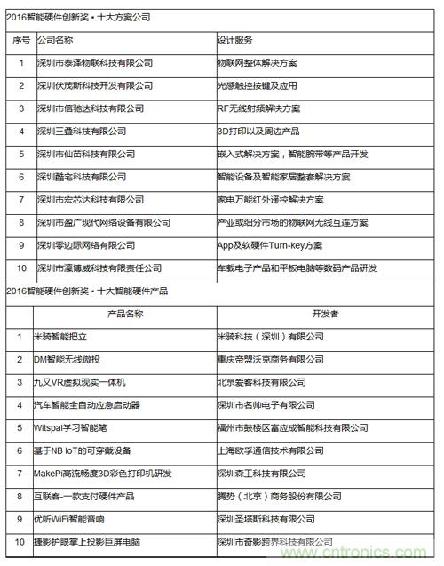 2016智能硬件創(chuàng)新獎(jiǎng)?wù)宫F(xiàn)出整個(gè)生態(tài)環(huán)節(jié)的創(chuàng)新。“智能硬件產(chǎn)品的創(chuàng)新,不再是一家公司的事情,而需要整個(gè)產(chǎn)業(yè)鏈的支持。智能硬件開發(fā)者創(chuàng)客在定義產(chǎn)品時(shí)需要專業(yè)的技術(shù)指導(dǎo),在產(chǎn)品開發(fā)時(shí)也需要與專業(yè)的方案公司合作應(yīng)對設(shè)計(jì)挑戰(zhàn),在產(chǎn)品化和量產(chǎn)過程中還會(huì)需要專業(yè)的供應(yīng)鏈和元器件采購方面的服務(wù)支持。強(qiáng)強(qiáng)聯(lián)手,才能夠打造創(chuàng)新的智能硬件產(chǎn)品,讓智能產(chǎn)品與眾不同。”劉杰博士指出。因此,本次評選也針對行業(yè)用戶的需求,特別設(shè)置了各個(gè)細(xì)分的獎(jiǎng)項(xiàng),如十大智能硬件產(chǎn)品和十大方案公司,樹立行業(yè)標(biāo)桿,讓智能硬件創(chuàng)新創(chuàng)業(yè)者快速找到適合自己的優(yōu)質(zhì)生態(tài)資源。