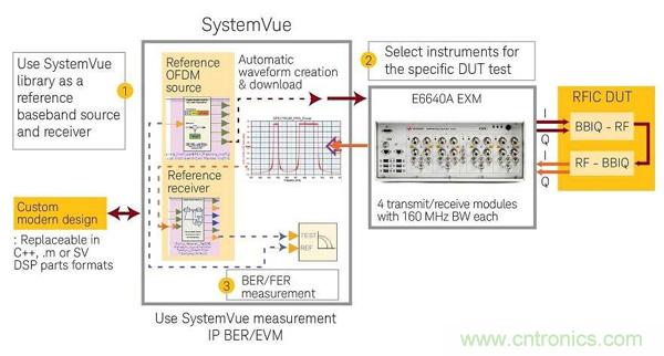 圖1:圖中顯示初期的802.11ax裝置評(píng)估流程圖。流程的核心是Keysight systemVue ESL軟體,它具有強(qiáng)大的功能及靈活性,可解決與802.11ax裝置設(shè)計(jì)和測(cè)試相關(guān)的挑戰(zhàn)。藉由SystemVue,在標(biāo)準(zhǔn)草案階段所開發(fā)出的IP,可快速連接到各種儀器進(jìn)行設(shè)計(jì)驗(yàn)證測(cè)試。