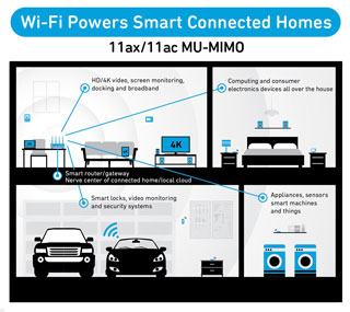 802.11ax將大幅提高網絡容量,支持多達8個同步數(shù)據流,每個數(shù)據流速率最高為1.2 Gbps,從而能以更高速度連接更多設備。Qorvo豐富的802.11ax 產品組合包括2.4GHz和5GHz前端模塊(FEM)及BAW濾波器。該產品組合中的高能效FEM減少了與支持Wi-Fi設備中多路輸入多路輸出(MIMO)相關的散熱問題,使制造商得以壓縮產品尺寸和成本。Qorvo BAW帶緣和共存濾波器可改善Wi-Fi服務質量,防止相鄰LTE頻率干擾。