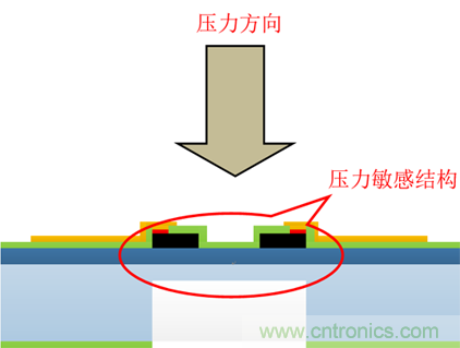 當(dāng)壓力敏感結(jié)構(gòu)受到氣壓壓力時(shí),壓敏電阻的阻值發(fā)生變化,進(jìn)而引起輸出電壓Vout發(fā)生變化,通過輸出電壓值與壓敏電阻的阻值變化的關(guān)系,實(shí)現(xiàn)壓力值的測量。