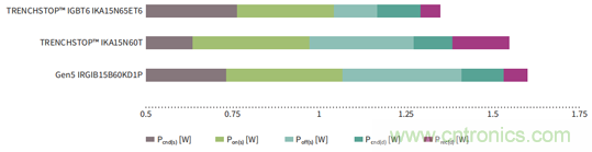 開關(guān)損耗,這對(duì)于開關(guān)頻率高達(dá)30 kHz的系統(tǒng)尤為重要。此外,為了降低總損耗,IGBT6的反并聯(lián)二極管采用恢復(fù)特性軟且快的Rapid 1 二極管。