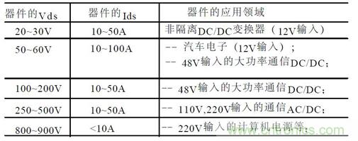 (A):根據(jù)電源規(guī)格,合理選擇MOSFET 器件(見(jiàn)下表):