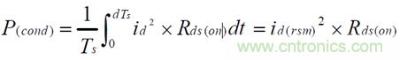 (C):從所選的MOSFET 的其它參數(shù),如正向通態(tài)電阻,結(jié)電容等等,估算其工作時(shí)的最大損耗,與其它元器件的損耗一起,估算變換器的效率;