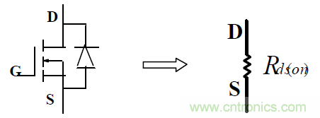 功率 MOSFET 正向?qū)〞r(shí)可用一電阻等效,該電阻與溫度有關(guān),溫度升高,該電阻變大;它還與門(mén)極驅(qū)動(dòng)電壓的大小有關(guān),驅(qū)動(dòng)電壓升高,該電阻變小。詳細(xì)的關(guān)系曲線(xiàn)可從制造商的手冊(cè)中獲得。