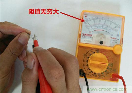 這里所講的使用的是指針式萬(wàn)用表,其指針擺動(dòng)幅度、直觀、明顯,數(shù)字式的也可以,原理上一致,區(qū)別在于表筆極性上