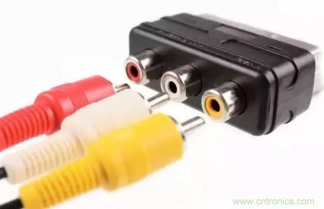 復(fù)合視頻接口是最基本的視頻連接器接口,過去主要用于家用視頻設(shè)備。這種接口常見于老款電視機(jī)、VCR和家用游戲機(jī),線和端子都是黃色。因?yàn)閷UV三種源信號(Y:亮度,U/V:顏色)進(jìn)行同步復(fù)合(composite),所以稱為復(fù)合視頻。在同一個信道(line)傳輸亮度和顏色信號,所以畫質(zhì)遠(yuǎn)不如后來出現(xiàn)的其他接口標(biāo)準(zhǔn)。復(fù)合視頻接口輸出的視頻分辨率最高可達(dá)SD(—standard definition)級,也就是480i(NTSC)或576i(PAL)。模擬視頻連接器通常不包含音頻信號,因此如上圖所示,需要單獨(dú)的音頻線。一般用白色(左)和紅色(右)兩個連接器傳輸立體聲信號。