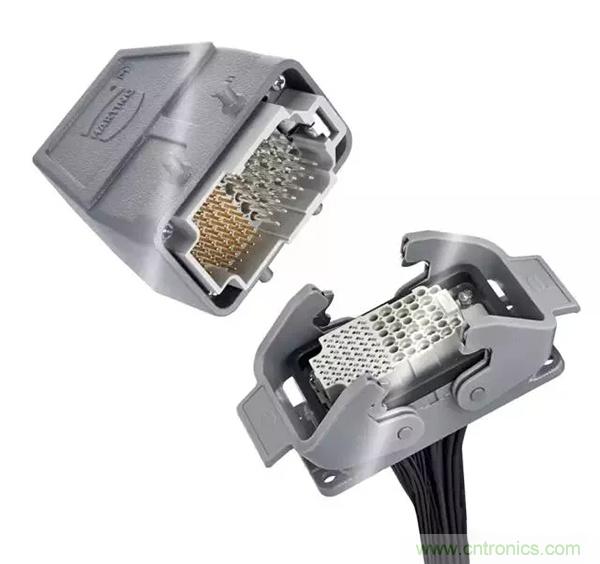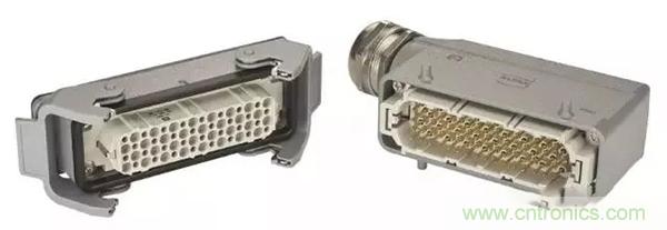 第二個例子是,Han® 高密度模塊:滿載的情況下,在模塊中有25個插針,能夠傳輸4A/50V的信號。其他具有更高的接觸密度的Han®模塊也在開發(fā)之中。