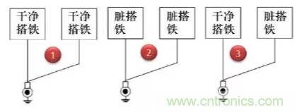 第1種方式干凈搭鐵回路之間的回路并接是允許的;第2種臟搭鐵回路之間的回路并接也是完全可以接受的;對于第3種臟搭鐵與干凈搭鐵回路并接,通常是可以接受的,但需要得到相關(guān)專業(yè)的評審?fù)ㄟ^。