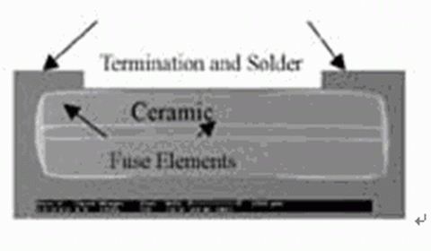 ---這些產(chǎn)品均采用單層熔斷元件設(shè)計(jì),熔斷元件接近熔斷器的表面,滅弧及保護(hù)層較薄。這種設(shè)計(jì)及結(jié)構(gòu)上的缺陷,限制了傳統(tǒng)SMD熔斷器的最大承載電流及額定電壓,在過載電流較大時(shí),電弧易將保護(hù)層擊穿。