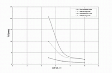合此式,得出從Ta 到 TSw 動(dòng)作時(shí)間。此式的重要性在于一已知的起始阻抗低切換溫度聚合物PTC組件,在故障期間提供更快速的動(dòng)作時(shí)間,見圖2。當(dāng)組件接近切換溫度時(shí),該組件的阻抗增加,因此所產(chǎn)生的熱更具效率;切換溫度較低,因此在較短時(shí)間內(nèi)就能達(dá)到所需的溫度變化。