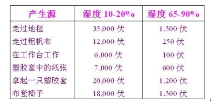 另一方面,濕度亦是一個(gè)重要的考量因素。適宜的濕度可降低ESD發(fā)生的機(jī)率。(見表2)這也是電子制造廠為何多在南方建廠的原因之一。