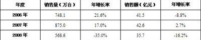 表1 2006-2008年中國MP3/MP4播放機(jī)機(jī)市場(chǎng)銷售情況