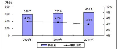 圖1 2009-2011年中國MP3/MP4播放機(jī)市場(chǎng)銷售量預(yù)測(cè)