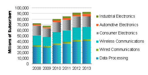 圖1:2008年-2013年中國半導(dǎo)體市場預(yù)測: