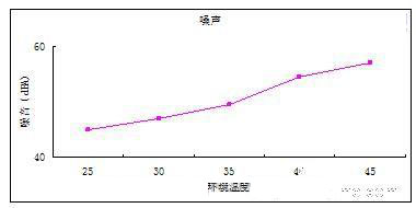 音頻噪聲污染主要控制方法是選用低噪音換熱單元,同時(shí)機(jī)柜采用消音措施。研究表明,換熱單元調(diào)速可有效的降低機(jī)柜噪音。圖5是某型戶外產(chǎn)品噪音水平與環(huán)境溫度關(guān)系曲線,從曲線可看出,采用調(diào)速后,隨著環(huán)境溫度減小,戶外柜噪音明顯降低。由于夜晚時(shí)環(huán)境溫度變低,因此采用該項(xiàng)技術(shù)的設(shè)備晚間有更低的噪音水平,非常符合實(shí)際應(yīng)用環(huán)境的需要。