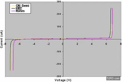 當(dāng)對(duì)以上器件的DC性能進(jìn)行比較的時(shí)候,結(jié)果看起來(lái)似乎是相同的(參見(jiàn)圖2所示曲線)。此外,它們都聲稱符合IEC61000-4-2第4級(jí)標(biāo)準(zhǔn),這就意味著它們將都經(jīng)受住高達(dá)8kV接觸電壓的ESD沖擊。