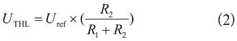 式(1)和式(2)是理論上的公式,實(shí)際上,為了將上述的滯回原理應(yīng)用于實(shí)際的電池系統(tǒng),還要考慮一個參考電壓的問題。參考電壓Uref是不能變的,否則上下電壓門限就會發(fā)生變化。而且參考電壓是由電池電壓供電產(chǎn)生的,它必須比電池電壓低的多,而且功耗極小。