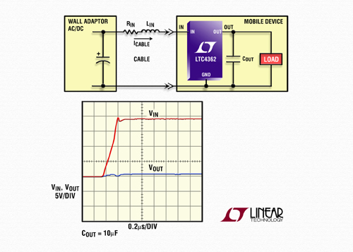凌力爾特公司 (Linear Technology Corporation) 推出 2.5V 至 5.5V 過壓和過流保護(hù)器 LTC4362,該器件為保護(hù)低壓、便攜式電子產(chǎn)品免受電壓瞬態(tài)和電流浪涌的損害而設(shè)計。電源適配器失效或故障,或者將一個 AC 適配器帶電插入設(shè)備的電源輸入時,可能會發(fā)生過壓。無意間將錯誤的電源適配器插入設(shè)備可能會因過壓或負(fù)電源電壓而引起損壞。LTC4362 運(yùn)用準(zhǔn)確度為 2% 的 5.8V 過壓門限檢測過壓事件,并在 1us (最大值) 時間內(nèi)快速響應(yīng),以隔離下游組件和輸入。高達(dá) 28V 的過壓保護(hù)由一個內(nèi)部雪崩額定的低 RDS(ON) MOSFET 實(shí)現(xiàn),而且在大多數(shù)應(yīng)用中無需瞬態(tài)電壓抑制器 (TVS) 或其它外部組件,就可承受電感電纜瞬態(tài)。此外,LTC4362 監(jiān)視一個內(nèi)部電流檢測電阻器兩端的壓降,以提供準(zhǔn)確度為 20% 的 1.5A 過流門限。LTC4362 目標(biāo)是具有多個電源選項(xiàng)的便攜式電子產(chǎn)品,如通過交流和汽車電池適配器以及USB端口充電的蜂窩電話、MP3/MP4 播放器、數(shù)碼相機(jī)等。