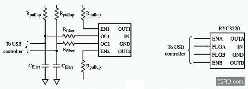 在匯流排供電的集線器、雙模式的集線器以及低功率主機中,PowerSwitch元件是最為常用的解決方案。這種元件還可用于USB設(shè)備中作為沖擊電流限制元件。PowerSwitch元件內(nèi)置了包括電源開關(guān)功能的電流限制功能,提供較低的導通電阻和快速的電流限制特性。這些特性均有其應用在功率有限的主機中。在這種主機中加入電源開關(guān)功能,就可以通過關(guān)閉出現(xiàn)故障的埠端來作最大限度地節(jié)省能量。