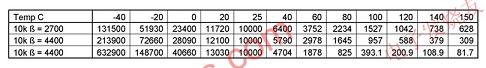 表1:該表顯示了一個典型的10kΩ標(biāo)稱熱敏電阻在3個不同β值時的電阻值。