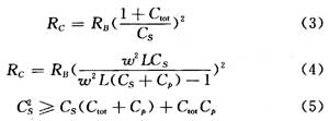 圖1到圖2所示的并聯(lián)電容Cp總是存在的。因為電感線圈匝間電容是不可避免的,每個電感均有其自電容,把這個自電容等效為并聯(lián)的電容Cp,且認(rèn)為是無耗的,則總的調(diào)諧電容值升高。如果CS足夠大,可以忽略他的影響,則得到有效調(diào)諧電容為: