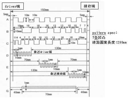 必需注意的是包含編號G的線路圖案再內(nèi),線路圖案的「物理長度」物理長度皆為290mm