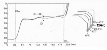 依此就可推論「線路圖案直線部分」與「造成輻射最大值的波長」兩者的關(guān)連性,也就是說線路圖案直線部分長度較短的A、B、C三線路圖案的輻射較低,相形之下D、E、F的輻射比較大;凹凸集中的D、E、F的輻射比凹凸分散的A、B、C大,G則無法納入檢討范圍。