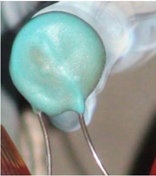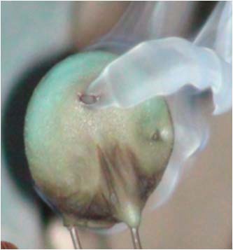 圖15:TMOV10S471 在600V*5A 電流試驗(yàn)后圖片 圖16:TMOV10S471 在600V*10A 電流試驗(yàn)后圖片
