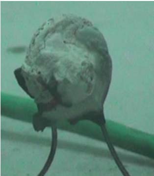 圖3:MOV14D471 在600V*1A 電流試驗(yàn)后圖片 圖4:MOV14D471 在600V*2A 電流試驗(yàn)后圖片