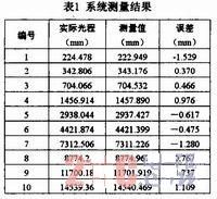 在實際測量中,利用組合測尺頻率先后進行兩次測量。第一次取主振信號頻率為52MHz,本振信號頻率為51.99MHz;第二次取主振信號頻率為51MHz,本振信號頻率為50.99MHz。對應于混頻后信號頻率為10kHz。FPGA中鑒相高速計數(shù)脈沖頻率為50MHz。基于以上參數(shù),對多段光纖進行測量。兩次測量的結(jié)果進行分析比較,可得到測量值。被測光纖的實際光程已由精密反射儀通過光學方法進行標定。測量結(jié)果如表1所示。