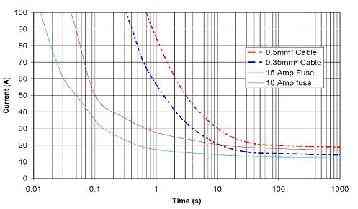 熔斷器的工作原則是一個(gè)簡(jiǎn)單的I2R與時(shí)間的關(guān)系。電流越大,熔斷或開(kāi)路時(shí)間越短。熔斷器的功耗與通過(guò)熔斷器的電流的平方成正比。當(dāng)功耗過(guò)高時(shí),熔斷器熔斷。這個(gè)特性同樣適用于受熔斷器保護(hù)的線束。當(dāng)熔斷器的“熔斷”特性與所保護(hù)的線束相似,只是處理電流能力略低時(shí),熔斷器是一個(gè)理想的選擇。