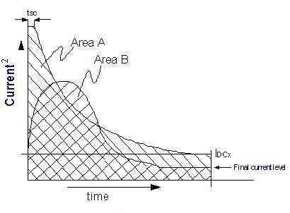 可能存在一種特殊的瞬間過(guò)流狀況:瞬間過(guò)流超出曲線與A區(qū)交接的界限,但是“曲線下面積”不足以產(chǎn)生錯(cuò)誤開(kāi)關(guān)條件。在下圖中(圖6),這個(gè)錯(cuò)誤是很嚴(yán)重的,但是因?yàn)闀r(shí)長(zhǎng)太短,不足以產(chǎn)生錯(cuò)誤開(kāi)關(guān)條件。
