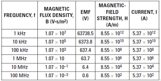 磁場(chǎng)線穿過附近導(dǎo)體環(huán)路時(shí),它們會(huì)產(chǎn)生一個(gè) EMF,其強(qiáng)度大小取決于環(huán)路面積和通量密度及磁場(chǎng)頻率: