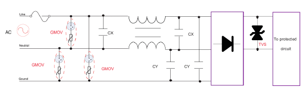 2、110 AC 交流電源雷擊浪涌保護應選用壓敏電壓為200V~300V 的壓敏電阻較合適